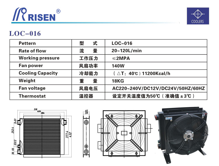 產(chǎn)品中心 >> 風(fēng)冷卻器 >> RISEN日森系列風(fēng)冷卻器 >> RISEN 日森 板式 風(fēng)冷卻器 兩側(cè)油口 風(fēng)冷 LOC-016 20-120L