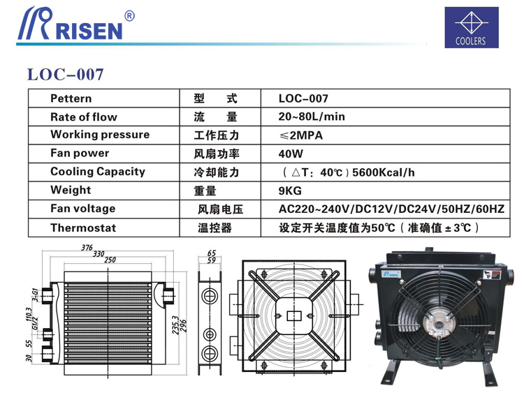 RISEN 日森 板式 風(fēng)冷卻器 兩側(cè)油口 風(fēng)冷 LOC-007 20-80L